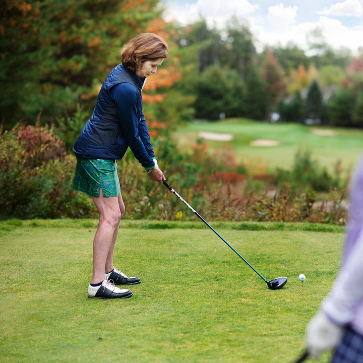 This women's golf skort combines style, comfort, and performance with a flattering, tailored fit and an elasticized waist. Featuring four pockets for essentials and a 17” length for optimal coverage and mobility, it offers both confidence and practicality. With patented designs and a sophisticated look, it's the perfect choice for the fashion-forward golfer.