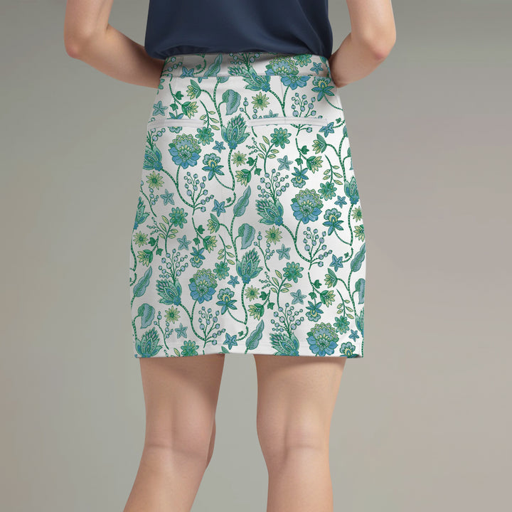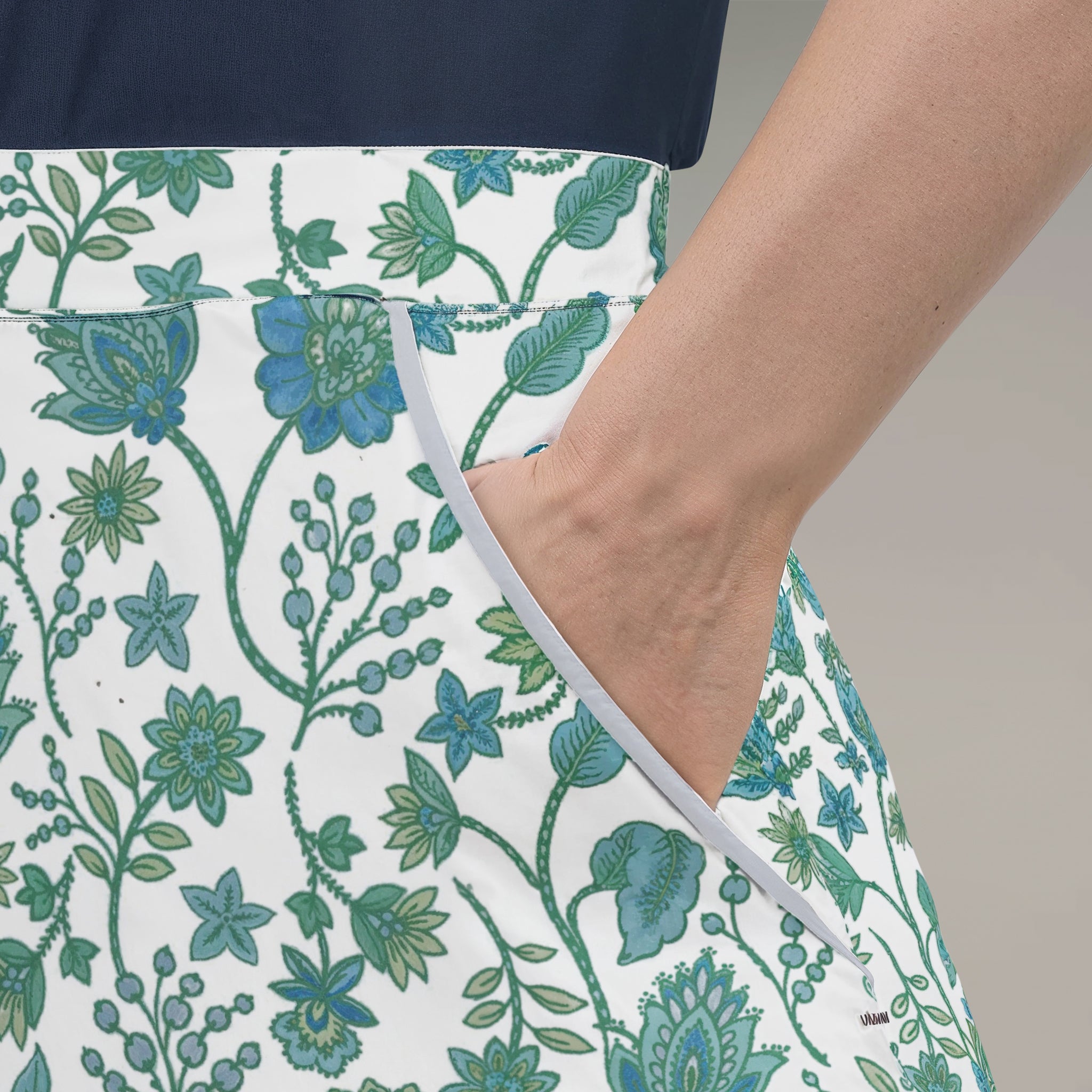 This women's golf skort combines style, comfort, and performance with a flattering, tailored fit and an elasticized waist. Featuring four pockets for essentials and a 17” length for optimal coverage and mobility, it offers both confidence and practicality. With patented designs and a sophisticated look, it's the perfect choice for the fashion-forward golfer.
